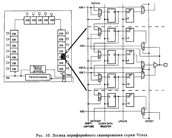 Как отмечалось ранее, конфигурирование и обратное считывание всегда доступно в режиме периферийного сканирования. Для выборки режима необходимо подать код <101> или <001> на контакты М2, Ml, М0.