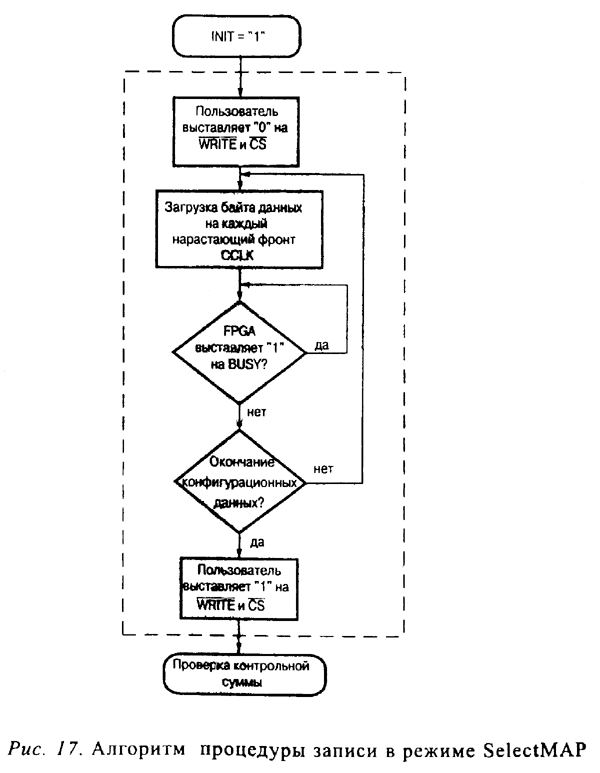 в, состоянии низкого логического уровня до момента готовности системы к конфигурированию. На протяжении фазы очистки конфигурационной памяти последовательность операций состоит из повторения цикла очистки памяти по всем адресам. Эти операции продолжаются до окончания одного полного цикла очистки памяти по всем адресам после установки сигнала на входе
