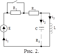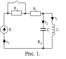 Задача . Дана электрическая цепь, в которой происходит коммутация (Рис. 1). В цепи действует постоянная ЭДС Е . Требуется определить закон изменения во времени токов и напряжений после коммутации в ветвях схемы.