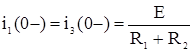 1. Находим токи и напряжения докоммутационного режима для момента времени t = (0–). Так как сопротивление индуктивности постоянному току равно нулю, а емкости – бесконечности, то расчетная схема будет выглядеть так, как это изображено на рис. 2. Индуктивность закорочена, ветвь с емкостью исключена. Так как в схеме только одна ветвь, то ток i1