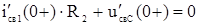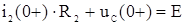 Напряжение на сопротивлении R2 равно Е – uC (0+) = 100 В, напряжение на индуктивности равно напряжению на емкости.