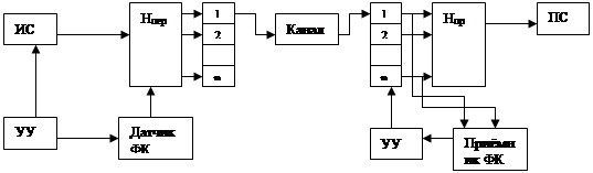 Передатчик с приёмником соединены прямым и обратным каналами связи и передатчик при вводе избыточности использует информацию о состоянии прямого канала, получаемую по каналу обратной связи (ОС).
