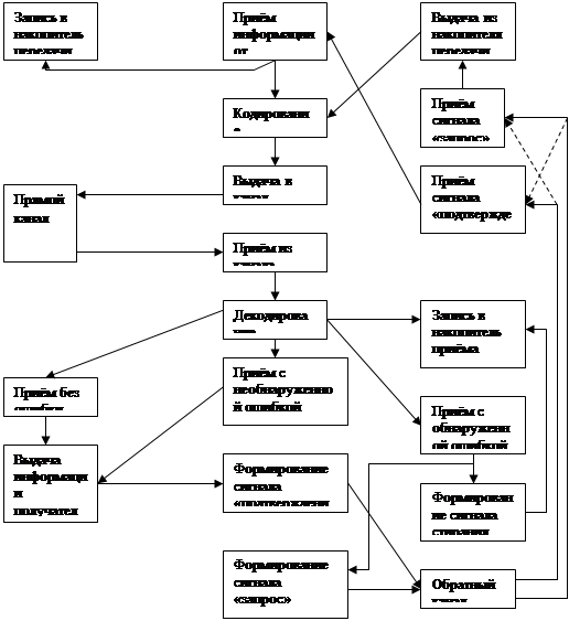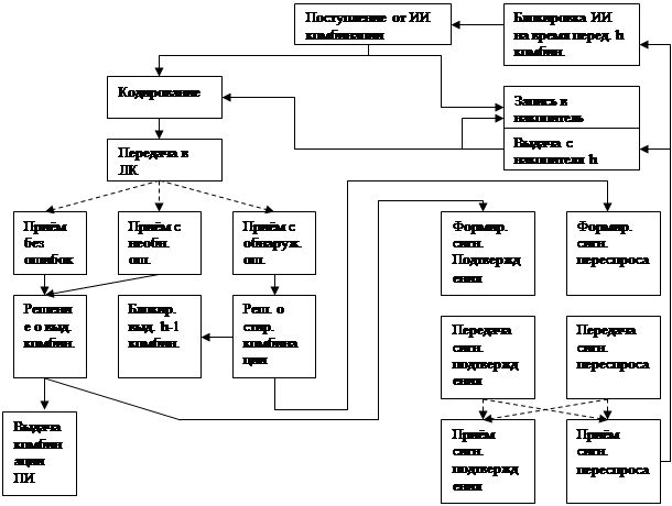 1.3.Системы с комбинированной ОС , в которых решение о повторной передаче или выдаче комбинации в ПИ может приниматься и в приемнике и в передатчике системы, а канал ОС используется как для передачи решений, принятых приемником системы, так и для передачи информации о принятой информации или состоянии канала связи.