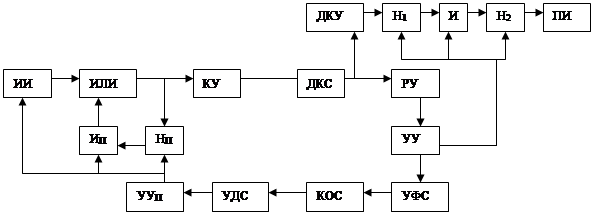 О – ограничитель; И – схема для получения импульсов ; Л – звено , формирующее линейно изменяющийся во времени сигнал ; ПС – пороговая схема.