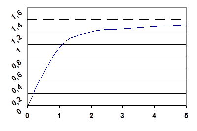 рис.4 Зависимость нормированной пропускной способности гауссовского канала от его полосы пропускания.