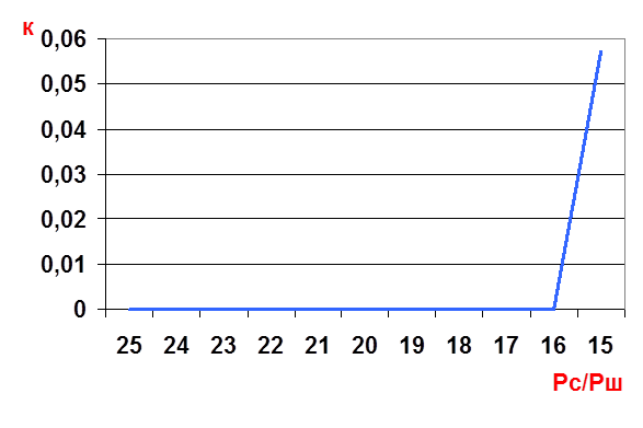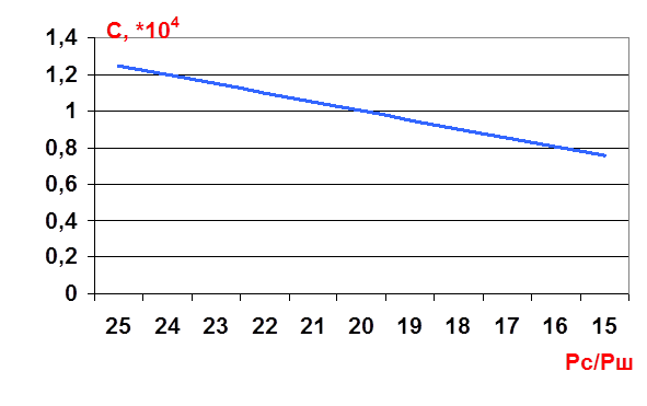 Чтобы было более наглядно, построим графики зависимостей с=f(Pc /Pш ) и κ= f(Pc /Pш ).