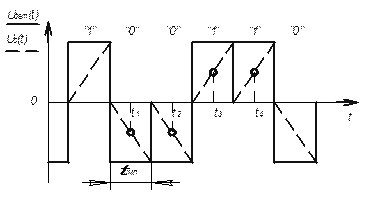 ). Иначе ошибки синхронизации приведут к тому, что почти в половине случаев оценка будет происходить не в конце данного разряда, а в начале следующего, что, в свою очередь, приведет к возрастанию вероятности ошибок в оценке символа. Чем ближе к середине будут взяты моменты