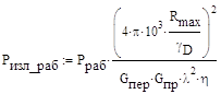 Тогда значение рабочей мощности передатчика на объекте равно [5]: