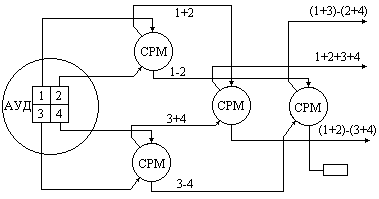 Считаем, что на станции установлен моноимпульсный измеритель угловых координат. Наиболее совершенным является суммарно-разностный вариант моноимпульсного измерителя, так как теоретически он позволяет исключить влияние изменений амплитуды и фазы принимаемых сигналов на стабильность равносигнального направления и пеленгационной характеристики и тем самым обеспечить наибольшую точность определения направления. При суммарно-разностной обработке сравниваются амплитуды сигналов. Для исключения влияния неравенства и нестабильности коэффициентов усиления каналов сравнение амплитуд производится до приемных каналов непосредственно после облучателей антенны с помощью высокочастотных мостовых схем, выполняемых на волноводах или коаксиальных линиях в зависимости от рабочего диапазона системы [4].