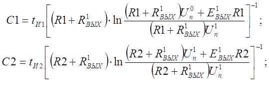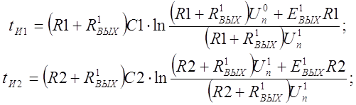 Из выражений для длительности импульсов на выходах мультивибратора: