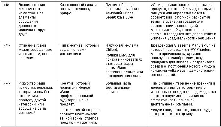 Если судить по этой таблице, "внутренней рекламе" до "ж" очень далеко. К счастью, она пока не стала настоящим искусством, а, значит, еще долго может быть по-настоящему полезной.