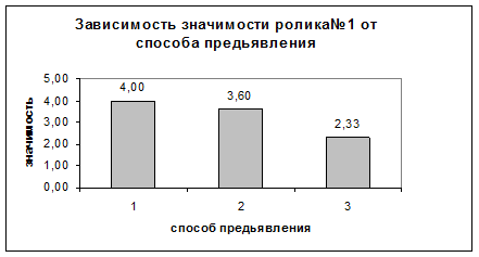 Полученные результаты подтверждает нашу гипотезу о том, что максимально приближенный по субъективным семантическим оценкам к идеальному рекламный ролик, обладает максимальной силой воздействия. Также на основании полученных результатов, подтверждение получает наша вторая гипотеза: наибольшей силой воздействия обладает способ предъявления рекламного ролика, при котором задействованы все три основных структурных компонента рекламного сообщения. Эта гипотеза подтверждается как кластерным анализом по субъективным семантическим оценкам, так и средними значениями по шкалам интерес и значимость.