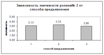 Следует также отметить, что по шкалам интерес и значимость ролик №2 получает оценки очень близкие по всем способам предъявления (около 3 баллов), причем эти оценки практически на балл ниже, чем оценки идеального ролика по тем же шкалам.