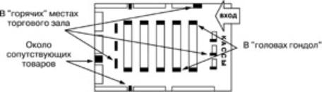 Важное значение имеет понятие дополнительных мест продажи, которые увеличивают вероятность покупки товара. Дополнительные места продажи являются эффективным инструментом повышения продаж, т.к. позволяют увеличивать количество импульсных покупок;