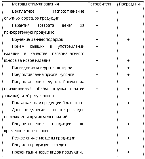 Главная задача стимулирования сбыта - побуждение Потребителя совершать закупки больших партий продукции и к регулярным коммерческим связям с предприятием.