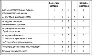 Практические советы №1 Контрольные точки для идентификации репутации В книге “Создание доброго имени вашей компании” Дэвис Янг определяет восемь контрольных точек, которые компания может использовать для анализа своей репутации. Он рекомендует компаниям задавать себе эти вопросы, честно отвечать на них и затем подсчитывать очки. Янг считает, что компания должна набрать по этому тесту по крайней мере 35 очков из возможных 40 перед тем, как она сможет организовывать позитивные и активные коммуникации. Инструкция для подсчета очков: обведите кружком ваши ответы на восемь вопросов. Сложите очки. Возможная минимальная сумма составляет 8 очков, а максимальная — 40. |