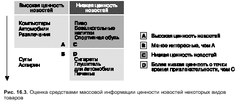 Пресс-релиз является первичным средством, используемым для установления отношений и передачи сообщения различным редакторам и репортерам СМИ. Пресс-релиз контролируется распространяющей его компанией, однако как он будет использован средствами массовой информации — это уже их выбор. Поэтому мы относим пресс-релиз к неконтролируемым инструментам PR. Решение об использовании пресс-релиза основано на оценке редактором ценности содержащихся в нем новостей. Рис. 16.3 иллюстрирует, как различные товары могут быть проранжированы с точки зрения ценности новостей.