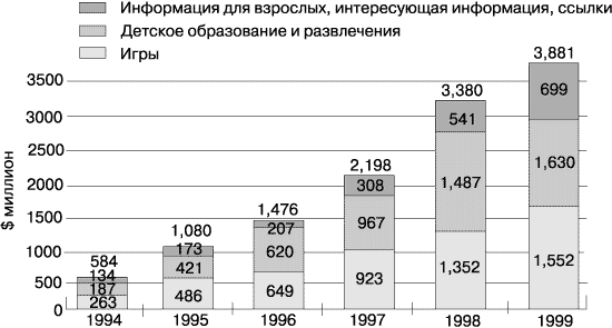 В конечном итоге, можно сказать, что этот рынок переоценен: там огромное количество поставок и не такое уж большое количество покупателей. Поэтому нужно быть осторожным, когда предсказываешь, каков будет объем продаж в мире новых средств распространения информации. Правда, среди потерь, то тут, то там, появляются и победители. Игры, развлечения и развлекательно-образовательные программы продолжают давать довольно большой товарооборот, потому что люди не устают развлекаться. Популярные прежде забавы вытесняются CD-ROM.4