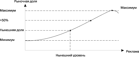 Некоторые маркетологи утверждают, что используют зависимость между затратами на рекламу и долей рынка. Несмотря на то что обоснованность такого подхода вообще можно оспаривать, зависимость между долей рынка и рекламой будет существовать лишь в том случае, если между предложениями соперников нет значительных отличий.