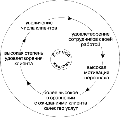 Мотивированный сотрудник окажет услуги более высокого качества, что приведет к лучшей их оценке потребителями и, следовательно, к увеличению числа последних. Это, в свою очередь, приведет к большей удовлетворенности сотрудников своей работой и к еще лучшей мотивации.ъ