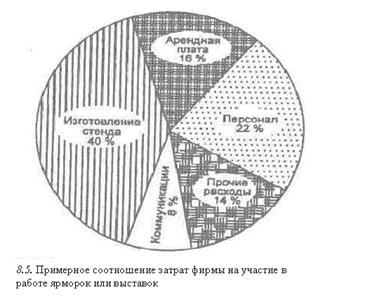 В современной концепции маркетинга ярмаркам и выставкам придается особое значение. Многие американские фирмы более 20 % всех средств, выделенных на маркетинг, используют в качестве затрат на подготовку и участие в ярмарках и выставках. Еще более значителен удельный вес последних затрат для европейских фирм. Он достигает 25 %.