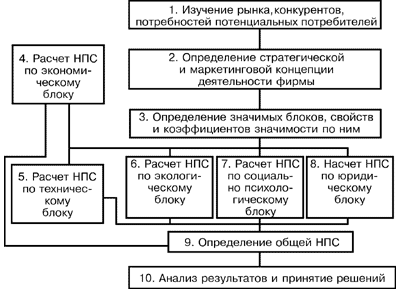 При данной концепции важную роль играют экономические, технические и юридические факторы; экологические, социально – психологические факторы менее значимы, и ими можно пренебречь. Показатель конкурентоспособности на основе НПС при данной концепции имеет вид: