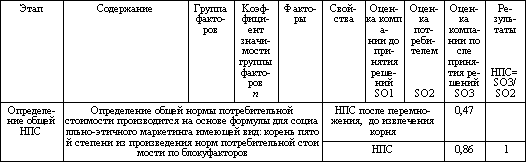 | 3 | Определение значимых блоков, свойств и коэффициентов значимости по ним | Для реализации алгоритма оценки конкурентоспособности на основе НПС необходимо выявить и детально классифицировать все влияющие факторы и свойства, образующие комплекс дилерских условий. Для выявления влияющих факторов и свойств было решено провести опрос потенциальных и действующих дилеров, а также систематизировать информацию об условиях конкурентов Были выявлены факторы, играющие существенную роль на данном рынке. По выявленным факторам была проведена оценка предлагаемых и потенциально требуемых условий. Сводные результаты оценок приведены в таблице 2 “Оценка факторов”. Данные оценки были даны ста потенциальными партнерами, которые в процессе опроса не ранжировались по известности, объему заказа и схемам работы. Благодаря проведенному опросу были найдены слабые места в дилерской политике компании, что позволило разработать систему мер по исправлению сложившегося положения |