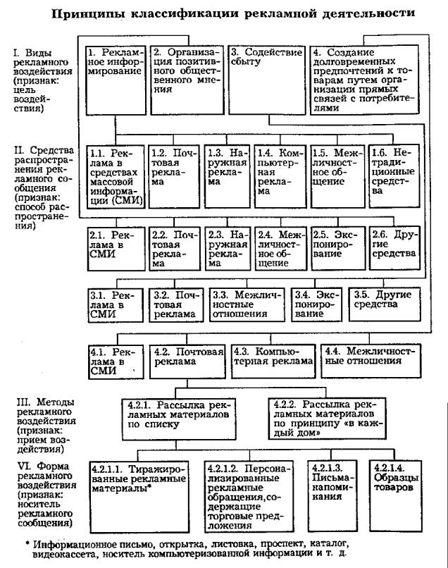 Автором данной книги предложены разработанные совместно с Т. Глушаковой принципы четырехуровневой схемы классификации рекламной деятельности.