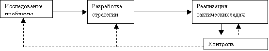 Теперь вспомним о том, что любая, не только маркетинговая, целенаправленная осмысленная деятельность включает в себя исследование проблемы, определение стратегических целей, формирование комплекса тактических мероприятий, необходимых для их решения, реализацию этих мероприятий, контроль результатов и корректирование действий, что показано на рис. 6: