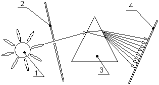 Рис. 1. 1 - источник света, 2 - диафрагма, 3 - призма, 4 - экран. |