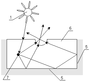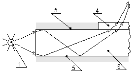 | Рис. 6. | Рис. 7. 1 - источник света, 4 - изображение, 5 - светоотражающая поверхность, 6 - оргстекло. |