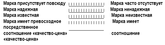 Не касаясь других методов оценки, хотелось бы подробней остановиться на оценке имиджа, так как его формирование является главной темой настоящей работы. Хороший способ оценить имидж состоит в том, чтобы подвергнуть лиц, входящих в состав представительной выборки, тестированию с помощью семантического дифференциатора (см. ниже) и одновременно провести тестирование конкурентов. Так получают сопоставимые данные о положении различных марок на рынке до и после рекламной кампании, а также в отдельные промежутки времени.