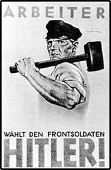 После унизительного для Германии поражения в войне Гитлер вернулся в Мюнхен. Взбешенный революцией в Германии и подъемом Веймарской республики, он обратился к политической деятельности, чтобы одновременно противостоять и Версальскому договору 1919, и новой германской демократии. Поскольку он все еще числился в штате своего старого полка, ему поручили шпионить за политическими партиями. В сентябре 1919 Гитлеру приказали навести справки о небольшой группе националистически настроенных ветеранов из Немецкой рабочей партии. Эта партия не имела ни программы, ни плана действий (она выступала лишь против правительства), ее казна насчитывала несколько марок, но Гитлера необычайно поразили некоторые ее идеи, совпадающие с его собственными. Он вступил в эту партию под №55, а позднее стал №7 ее исполнительного комитета.