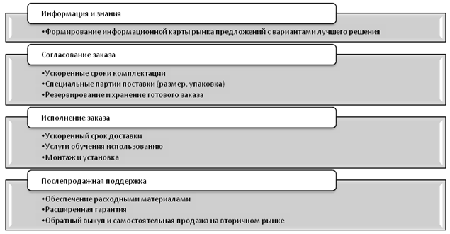Смысл создания расширенного уровня сервиса в предложении клиенту ряда услуг с большей ценностью взамен услуг, которые клиент вынужден покупать у внешних провайдеров параллельно или последовательно с совершением сделки по вашему основному продукту.