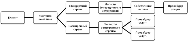 Формирование поддержки исполнения расширенных сервисных услуг опирается на использование собственных возможностей, координации внешней цепочки независимых операторов и комбинаций этих двух вариантов.