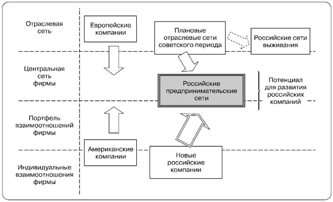 Формирование и развитие межфирменных взаимоотношений и сетей происходит в рамках определенной культурной, исторической и институциональной среды. В России подобные сети возникли в экономической ситуации, отличавшейся от развитых экономических систем, что позволяет выделить ряд специфических особенностей [Сиваков, 1999; Саутин, 1999; Окулов, 1999; Логинов, Костюхин, 2000; Радаев, 2000].