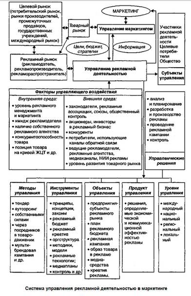 Для выработки теории управления рекламной деятельностью в соответствии с управлением маркетингом необходимо рассмотреть следующие вопросы: