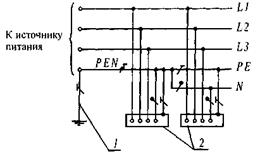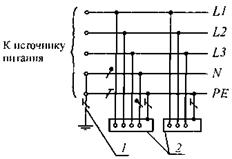 Классификация помещений по опасности поражения людей электрическим током (правила устройства электроустановок ПУЭ). Все производственные помещения в зависимости от наличия условий, создающих опасность поражения людей электрическим током, подразделяются на классы: помещения без повышенной опасности (помещения, в которых отсутствуют условия, создающие повышенную или особую опасность); помещения с повышенной опасностью (помещения, в которых имеется одно из следующих условий, создающих повышенную опасность: относительная влажность воздуха длительно более 75%; токопроводящая пыль; токопроводящий пол; температура воздуха длительно превышает +35о С; возможность одновременного прикосновения человека к имеющим соединение с землёй металлоконструкциям зданий, технологическим аппаратам, механизмам и т. п., с одной стороны, и к металлическим корпусам электрооборудования – с другой стороны); особо опасные помещения (помещения, в которых имеется одно из следующих условий, создающих особую опасность: относительная влажность воздуха близка к 100 %; химически активная или органическая среда, разрушающая изоляцию и токоведущие части электрооборудования; наличие одновременно двух и более условий повышенной опасности).