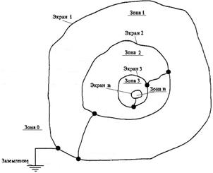 На границах зон осуществляется экранирование и соединение всех пересекающих границу зон металлических элементов и коммуникаций между собой.