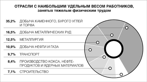 В Российской Федерации сохранилась тенденция роста удельного веса работников, занятых в условиях, не отвечающих санитарно-гигиеническим нормам: в течение 2002 - 2007 гг. этот показатель увеличился с 19,2 до 24,0%. Наибольший удельный вес работников, занятых в условиях, не отвечающих санитарно-гигиеническим нормам, отмечен в организациях, осуществляющих деятельность по добыче полезных ископаемых, - 33,7%. Выше среднего значения этот показатель отмечен также в организациях по производству и распределению электроэнергии, газа и воды (27,9%).