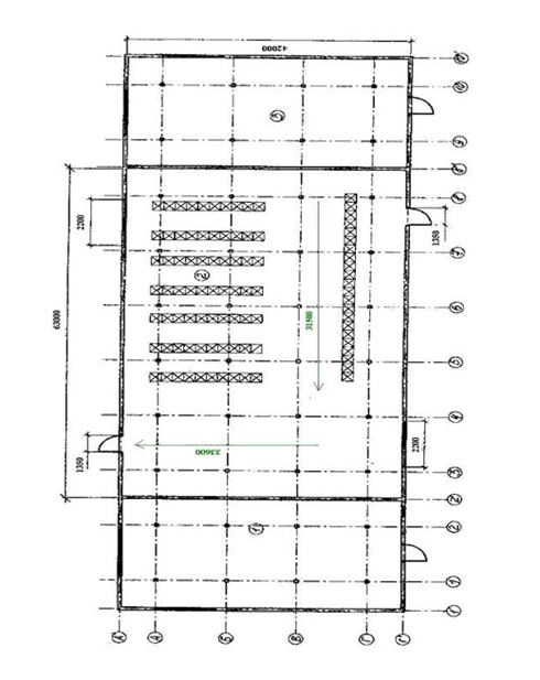 Складской корпус представляет собой одноэтажное здание, разделённое перегородками на три помещения. Схема складского корпуса представлена на рис. 1.1. Необходимые расчёты и выводы проводятся для складского помещения №2, в котором хранятся материальные ценности на стеллажах. Люди в помещении находятся на нулевой отметке. Расположение пола в помещении – горизонтальное. Помещение оборудовано внутренним противопожарным водопроводом.