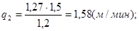 По табл. 2 прил. 2 ГОСТ 12.1.004–91 «Пожарная безопасность. Общие требования» определяем: для q2 =1,58 (м/мин) v2 =100 (м/мин).