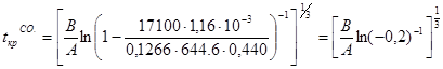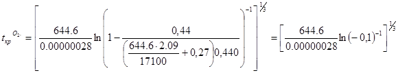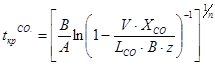n – показатель степени, учитывающий изменение массы выгорающего материала во времени, n=3;
