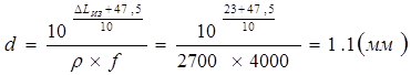 Тогда толщина звукоизолирующего материала определяется как: