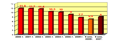 Дорожно-транспортные аварии наносят экономике России значительный ущерб, составляющий в последние 4 года 2,2 – 2,6 процента валового внутреннего продукта страны (в 2004 году ущерб составил 369 млрд. рублей, в том числе в результате гибели и ранения людей – 227,7 млрд. рублей) [4].