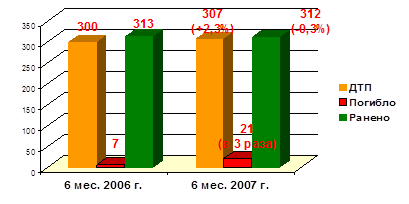 Следствием такого положения является ухудшение условий движения, заторы, увеличение расхода топлива, ухудшение экологической обстановки и рост количества дорожно-транспортных происшествий. В настоящее время в городах и населенных пунктах происходит более 70 процентов всех дорожно-транспортных происшествий. Темпы прироста числа пострадавших в городах опережают темпы прироста количества дорожно-транспортных происшествий. Почти 60 процентов дорожно-транспортных происшествий (далее – ДТП), происходящих в городах, приходится на республиканские, краевые и областные центры.