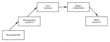 Основні СТАДІЇ ПОЛУМЕНЕВОГО ГОРІННЯ представлені на рис. 2.2.