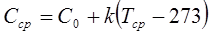 где Со - начальное значение коэффициента удельной теплоемкости кДж/(кг∙К); k-коэффициент пропорциональности.