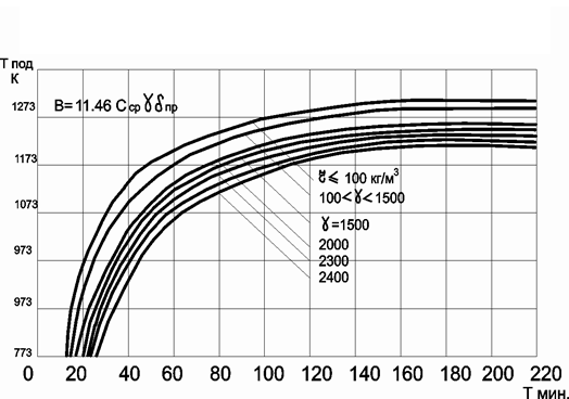 4. По рис. 3.3. с учетом выбранного интервала времени и плотности материала определяем значение температуры поверхности Тпов и среднее значение температуры Тср для каждого вида материала: