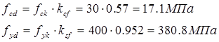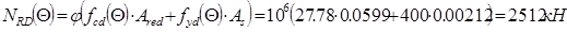 Поскольку ξ<, разрушение конструкции происходит по потере прочности арматуры, проверка сжатой зоны бетона по потере прочности при нагреве – не целесообразна.